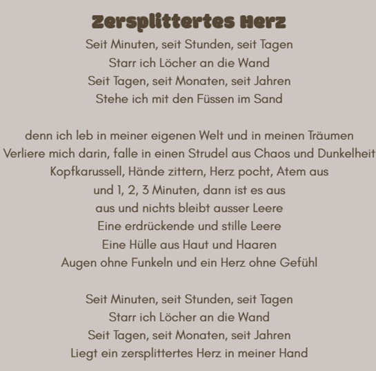 Ich gebe dir gerne in den nächsten Abschnitten einen kleinen Einblick in meine Welt, meine Gedanken und somit auch in meinen Kopf.